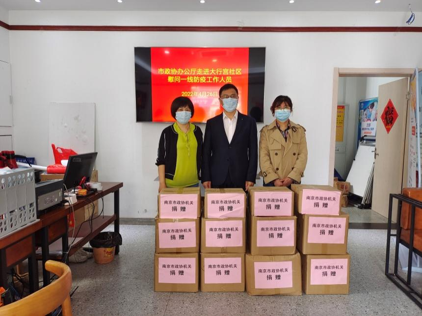 4月26日,南京市政协机关党委书记、办公厅副主任徐继昌带队,带领市政协机关党委的同志,赴玄武区梅园新村街道大行宫、梅园新村2个社区开展慰问,向奋斗在抗疫一线的社区工作者赠送了由机关专项党费购置的口罩、消毒湿巾等防疫物资。
