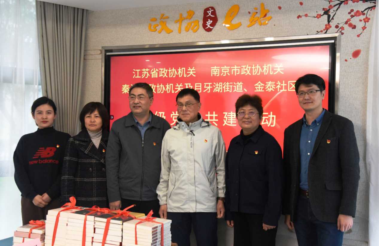 4月4日,江苏省政协机关、南京市政协机关、秦淮区政协机关及月牙湖街道、金泰社区五级党组织在秦淮区月牙湖街道御水湾小区“梧桐语政协书屋—便民服务驿站”,开展共学共建活动。