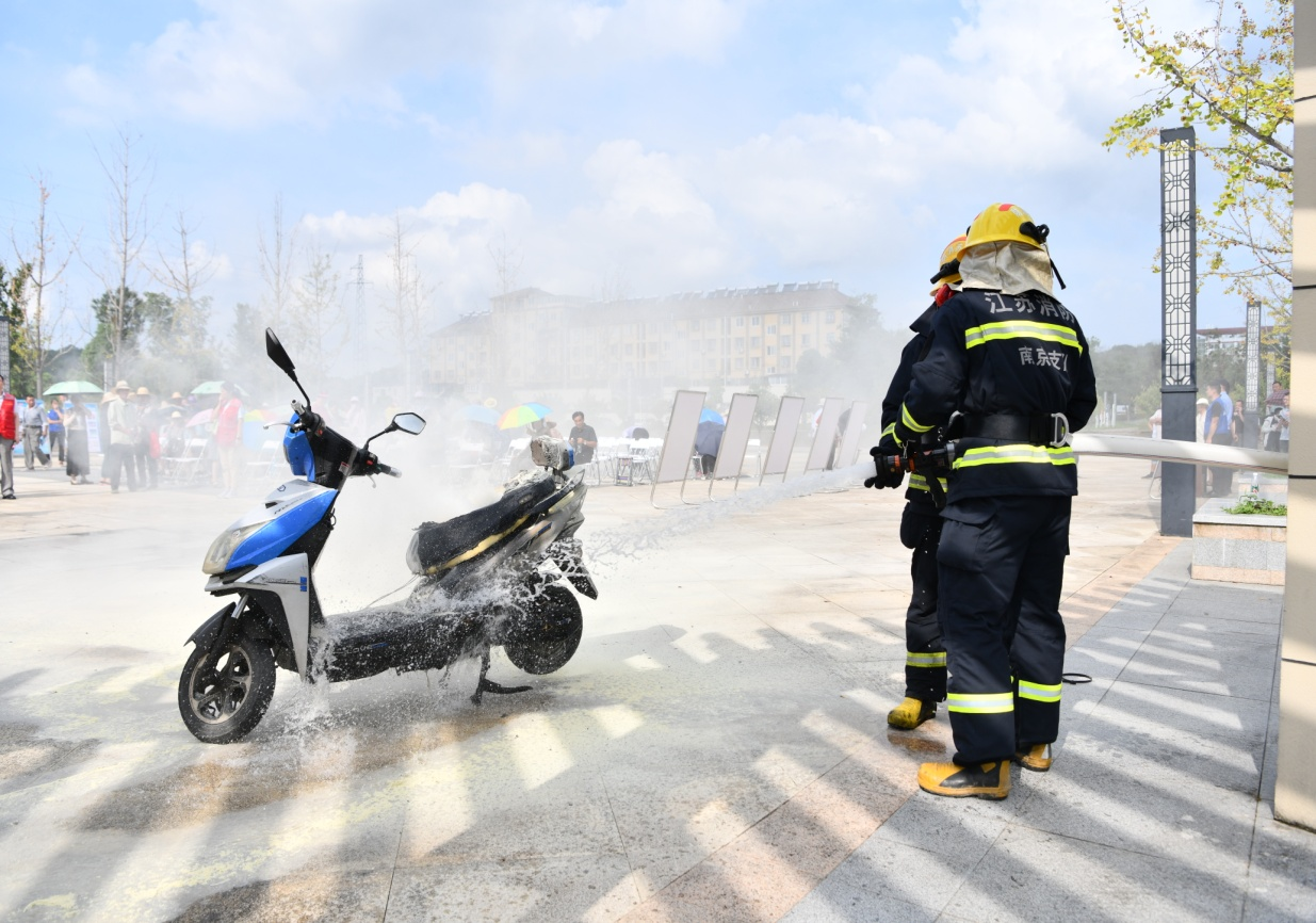 溧水区消防救援局、公安分局交警大队现场组织了电动自行车火灾安全教育及电动自行车火灾灭火演练,还通过展示宣传展板、发放宣传资料、现场讲解、有奖知识问答等方式,向广大群众详细介绍了电动自行车全链条安全整治工作的重要意义、目标任务、工作措施和安全常识。