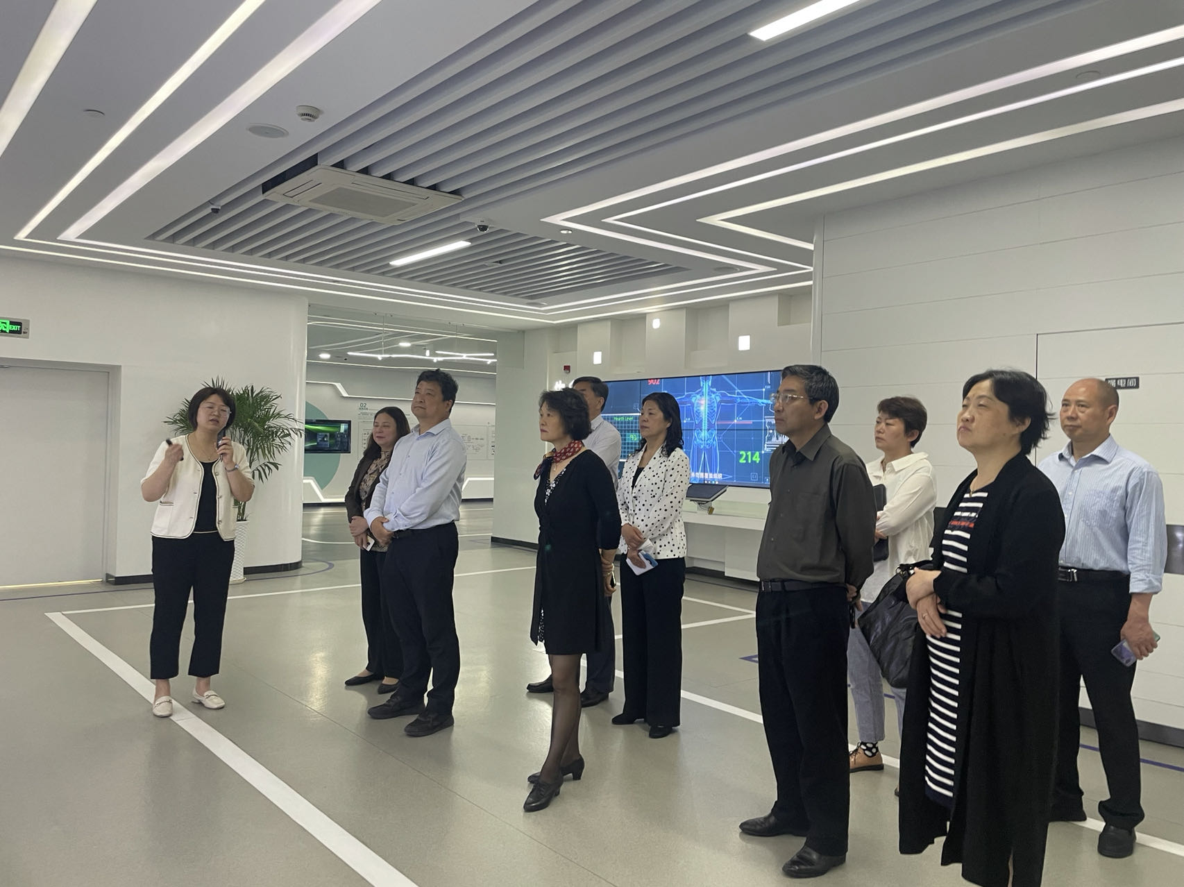 在健康东部中心,调研组一行调研了中心展厅、基因与细胞实验室,听取了中心的体系架构与运营情况介绍。傅阳等调研组成员与中心部门负责人就大健康医疗数据如何安全管理使用、大数据赋能健康医疗产业、生命健康产业科学仪器开放共享等方面进行了深入交谈。健康东部中心是国家级健康医疗大数据信息化服务及应用平台,承担我国东部3-4亿人的临床医疗、公共卫生、生命组学大数据的存储、分析和运用,是江北新区建设“基因之城”的标志性工程。