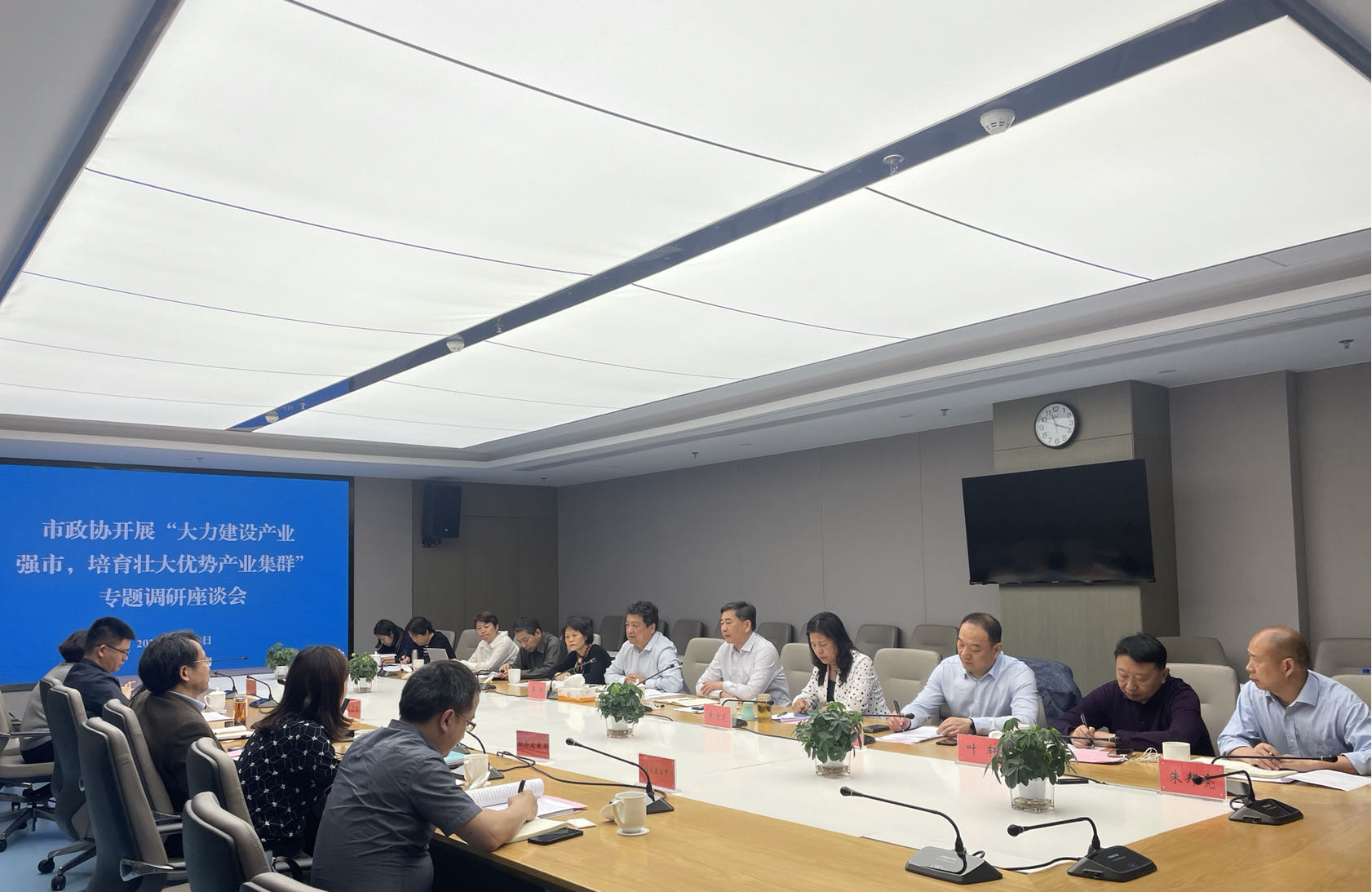 近日,市政协副主席傅阳率领重点课题调研组在江北新区,赴江苏省产业技术研究院(以下称“省产研院”)、国家健康医疗大数据(东部)中心(以下称“健康东部中心”),对江北新区推进重点产业发展以及省产研院助力我市培育壮大优势产业发展情况等进行调研,并召开专题座谈会,人口资源环境(城市建设)委员会主任徐有俊主持会议。