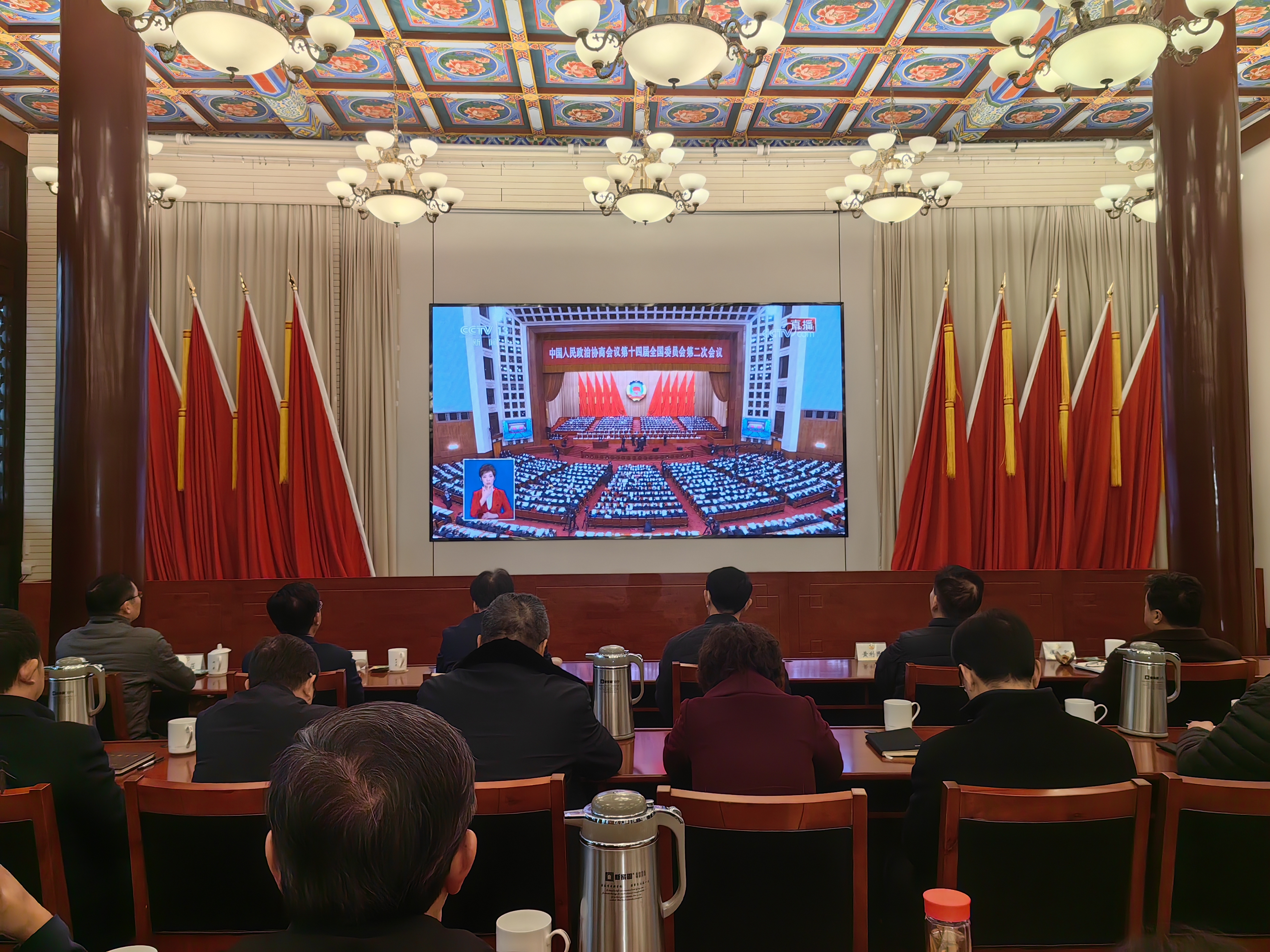 当天下午2时许,市政协机关干部以及部分市政协委员提前抵达市政协资政堂,热切期待全国政协十四届二次会议开幕。在电视直播过程中,大家全神贯注聆听全国政协主席王沪宁代表全国政协常委会所作工作报告,边听边思考并记录下重要内容。