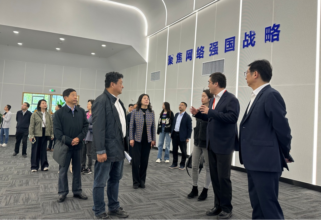 在未来网络集团,调研组听取了企业负责人对未来网络创新技术以及科研成果转化情况的介绍,并在国家重大科技基础设施-未来网络试验设施(CENI)总控与演示中心了解了CENI建设及运营情况。未来网络集团是由南京市、区、开发区政府引导基金与创始技术团队共同出资设立的混合所有制科技型企业,负责国家大科学装置--未来网络试验设施(CENI)的运营和产业化。公司在支撑国家重大战略、国家重大工程、数字化建设等方面取得了突破性成果,在网络信息领域处于领先地位。