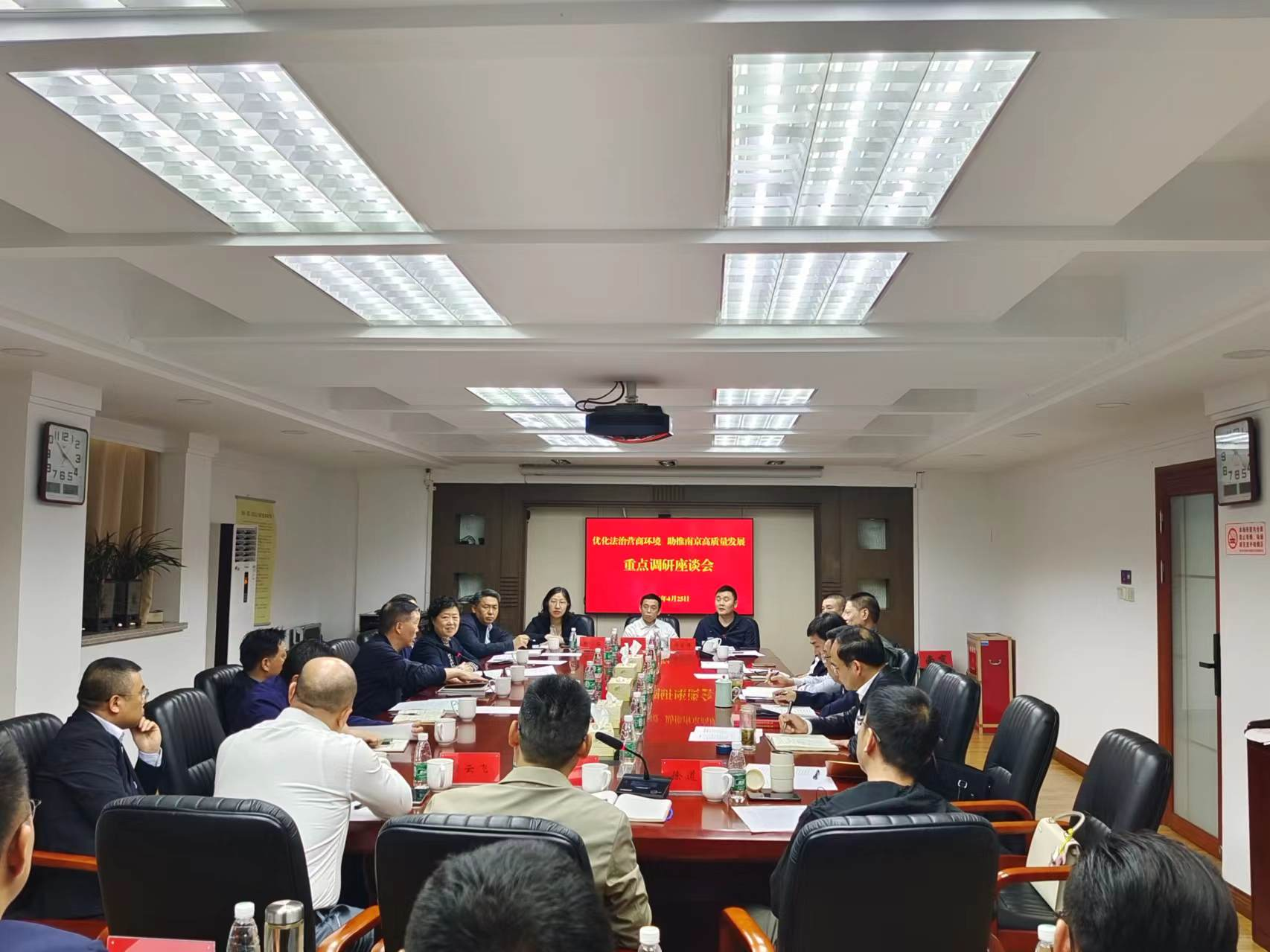 近日,市政协社会法制(民族宗教)委员会赴市工商联围绕“优化法治营商环境 助推南京高质量发展”重点调研课题,组织召开市场主体专场座谈会。市政协副主席黄利民出席并讲话,市政协社法(民宗)委主任陆蓉主持座谈会,副主任、一级巡视员鲍陈,市委统战部副部长、市工商联党组书记丁铭,市政协副秘书长、市工商联党组成员、副主席钱卫冰,市工商联一级调研员卞文佐,部分调研组成员参加。